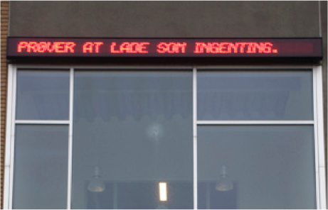 Med udgangspunkt i den lokale husmand Peder Lykkes dagbogsnotater fra 1880erne er her udformet en serie på 13 stedsspecifikke bannere til landsbyen Nees, hvor Peder Lykke boede og havde sin hverdag. Dagbogsnotaterne kombineres her med billeder/ikoner samt enkeltord, som er trukket frem til yderligere beskrivelse og genbeskrivelse. Nees ligger placeret ca 30 km. vest for Holstebro - i det medierne har døbt for udkants-danmark.