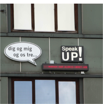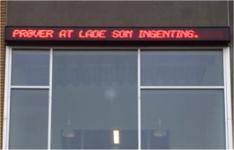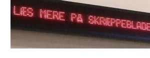 IN 2009 /10 the content from the text display was temporarily displaced in the city centre od Aarhus. Passersby and citezens living in the center were given the oppotunity to read the alternative headliners and being updated about events going on in Gellerup - a neigbourhood which often in the public general opion is regarded as a no-go-area